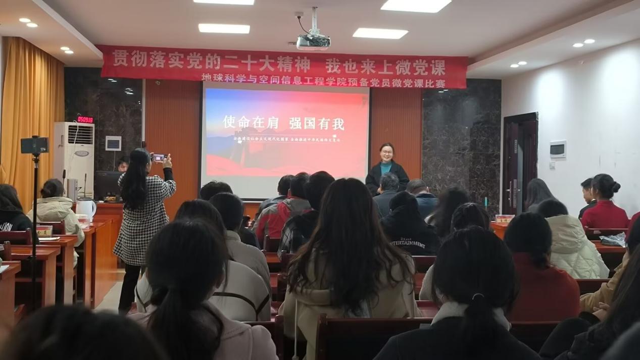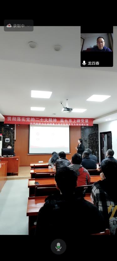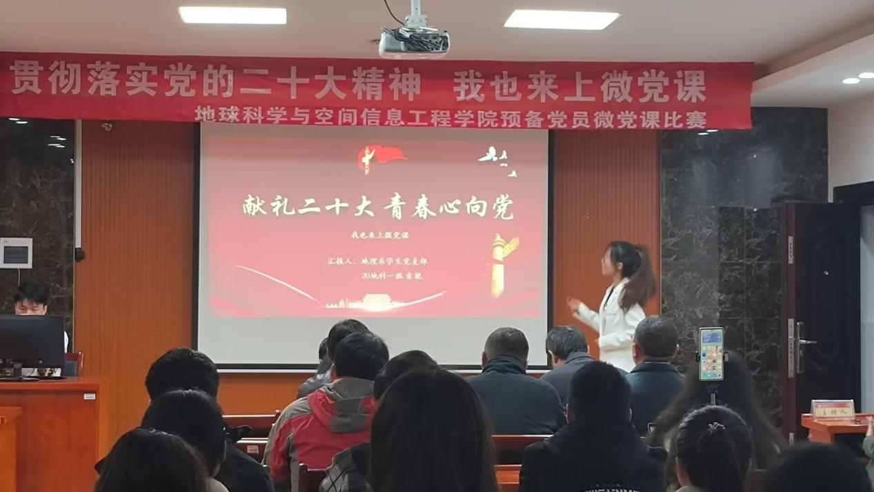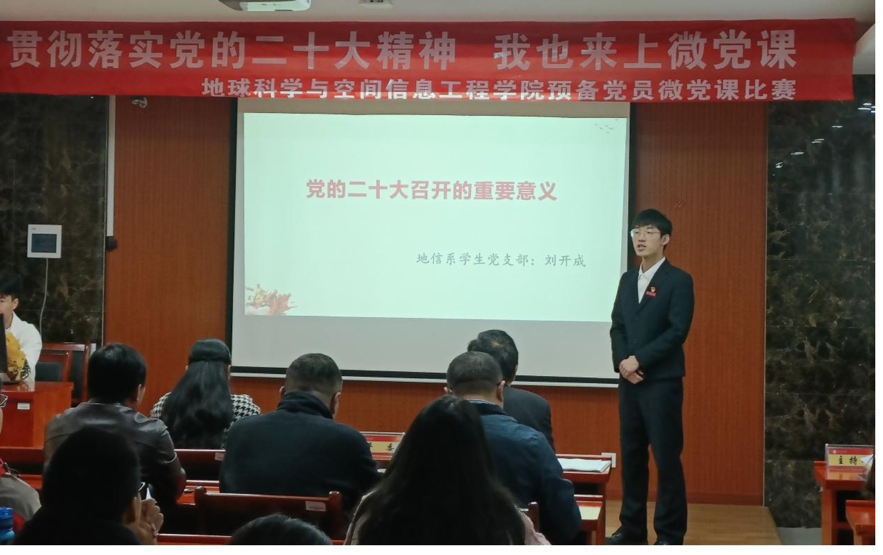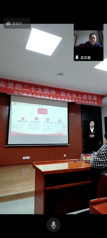 疫情的脚步并没有阻止我们前进的步伐,冬日凛冽的寒风伴舞着赛手们斗志昂扬的精神。为深入学习贯彻党的二十大精神,检验预备党员对二十大精神的领会,11月29日下午,色情动漫 举办了线上线下的“贯彻落实党的二十大精神,我也来上微党课”比赛决赛活动。担任此次的评委有线上的学院党委书记龙四春,有线下的学院院长任伯帜、党委副书记罗玺、地理党支部书记李振国、地信系党支部书记陈新保、测绘系党支部书记张立亚、地空重点实验室党支部副书记唐志光。此次微党课比赛活动由学院党委专职组织员刘俊策划组织,分初赛与决赛,今天下午的决赛由学院学生党校管理部部长傅颖主持,党校工作人员、学院全体预备党员参会。