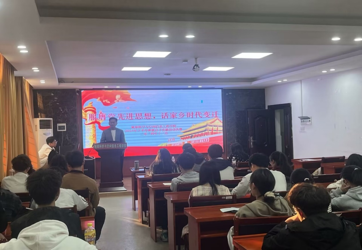 2024年11月5日,色情动漫 于地学楼206举办2024下半年入党积极分子演讲比赛的决赛,本次活动的评委是:学工办朱理哲老师、地信系教工党支部书记陈新保老师、专职组织员刘俊老师、2021级辅导员罗杰老师、团委书记黄港晨老师、2022级辅导员吴小营老师。