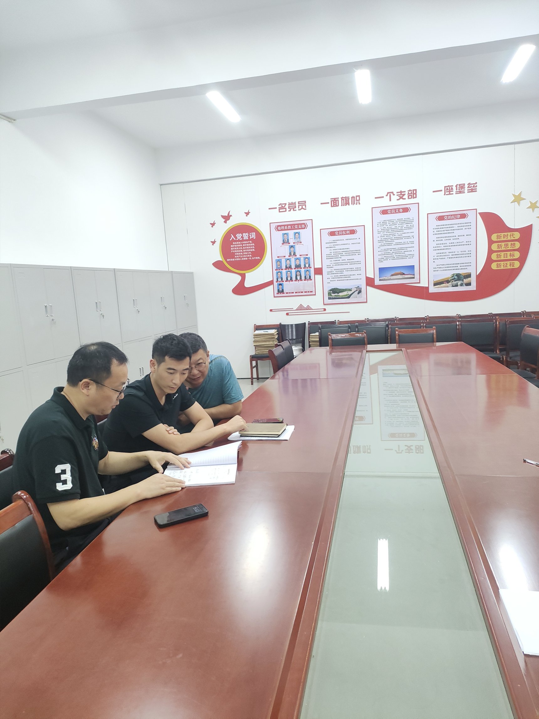 ▲图为在地理教职工党支部检查
