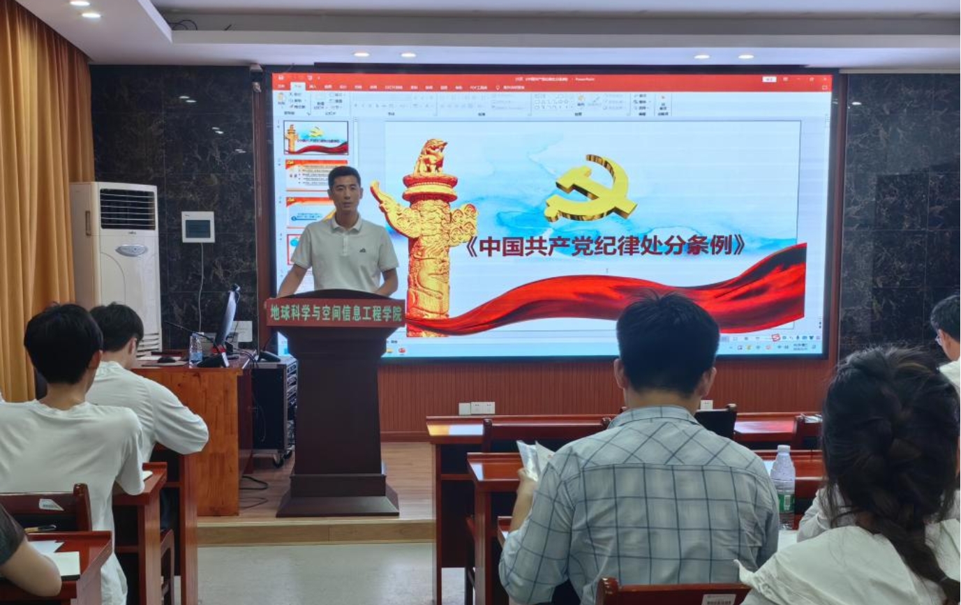 根据党纪学习教育工作安排,为加强各支部党员的纪律教育,提高党性修养,让支部成员做到学纪、知纪、明纪、守纪。2024年5月21日,色情动漫 党委副书记崔皓以党纪学习为主题,在地学楼206会议室为地质系、地理系和测绘系三个学生党支部上党课。