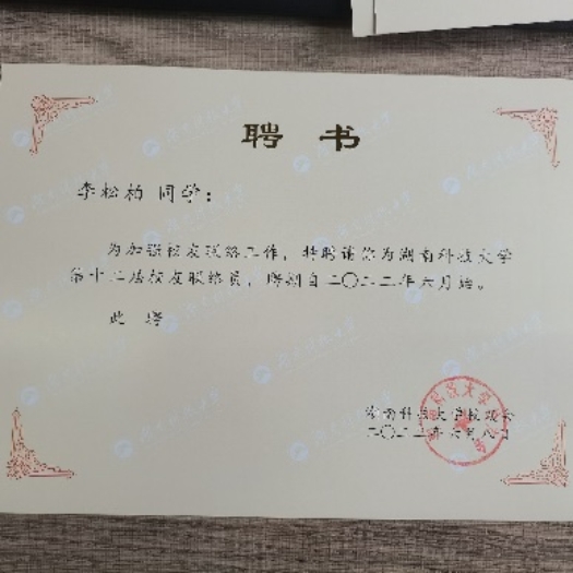 最后,在部门的分工合作下,本年度招聘22级校友联络员18位,以便促进校友与母校的联络与沟通,及时提供校友的动态信息,报道校友的优秀事迹等。最后在郭念桐的汇总后顺利完成这项工作。在新部长欧阳芳的组织下,校友部也做好了校友联络员聘书的发放工作。
