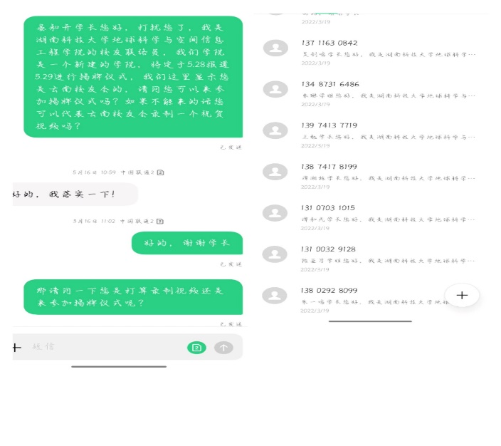 首先是对老校友们通过电话以及发短信的方式进行问候,之后向他们告知地学院的成立并且进行邀请工作,除此之外我们还向各地校友会进行邀请,也接收了四川、云南等各地对地学院成立的祝贺视频。