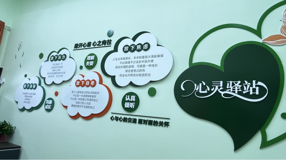 辅导室整体以暖色调为主,室内淡绿的墙纸、纯色的沙发,绿植盆栽以及可爱的玩偶营造简单温暖的风格,为学院师生提供了一个轻松、舒缓的沟通环境。辅导室内还粘贴了与积极的心理暗示有关的贴画和温暖励志的话语,同时还加以象征着顽强、坚韧和自我超越的荷花作为点缀,旨在鼓励学生放平心态,敞开心扉地交流,乐观地面对生活。