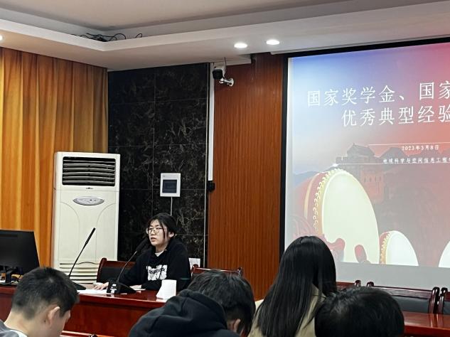 3月8日下午,色情动漫 在地学楼206举行了国家奖学金、国家励志奖学金优秀典型经验分享会。学院21级测绘专业和地信专业的学生参加会议。会议由勤工部原梦博主持。