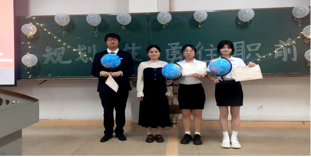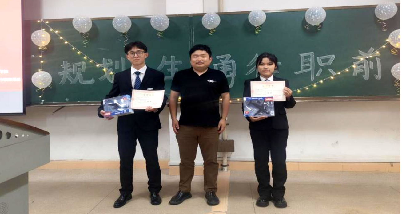 大赛最后,主持人邀请学院辅导员吴汉老师发言。吴汉老师在讲话中对职规大赛的成功举办做了充分肯定,对获奖的选手表示祝贺,希望同学们能够发挥榜样力量,固化成果。最后由吴汉老师、邓雯璐老师、刘炯老师分别为获奖同学颁发奖状和礼品。