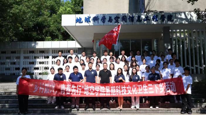 仪式的高潮部分,由龙四春书记亲自为“三下乡”活动授旗,鲜红的旗帜在空中飘扬,象征着地空学子们即将开启的壮丽征程。随后,全体学生共同奏唱共青团团歌,歌声嘹亮,展现了地空青年昂扬向上的精神风貌。仪式最后,全体成员在学院楼前合影留念,定格了这一难忘的历史瞬间。