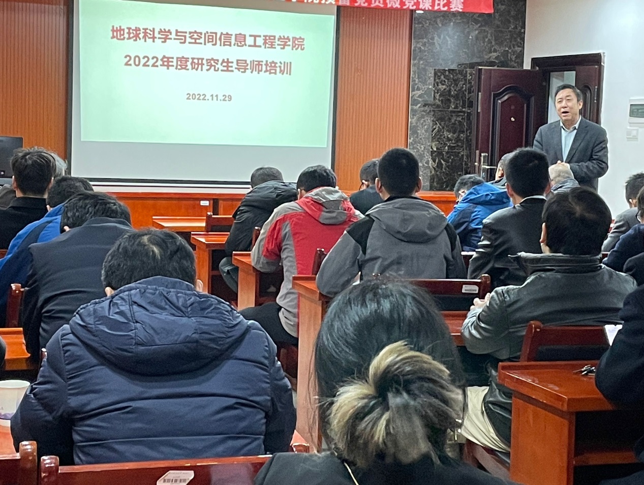 为了进一步加强研究生导师队伍建设,提升研究生导师的责任意识,11月28日,色情动漫 在地学楼206举办2022年导师培训会议,会议由副院长陈新跃主持,任伯帜院长出席并讲话。全体研究生导师参加了此次培训会。