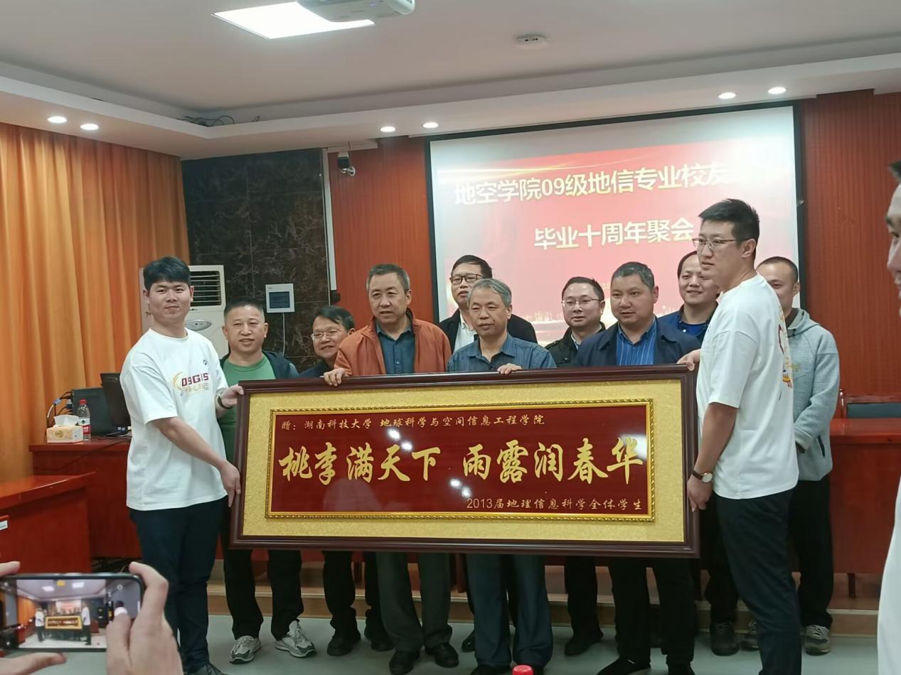 各位校友进行了踊跃发言。张攀校友首先对于能够再一次回到科大,是十分开心的。刘朱婷校友很感谢当初遇见这个专业,这是一个新的发展方向,今天回到科大,感觉就像是回到了家。周群校友说大学是梦想的起点,可以让自己做出想要的选择,学校是最美好的地方,在遇到困难的时候会想到科大,会为科大骄傲,希望学校越来越好,希望聚会频率增大,希望每一次聚会老师都在。随后校友们一起给学院赠送了匾额,祝愿学院越办越好。