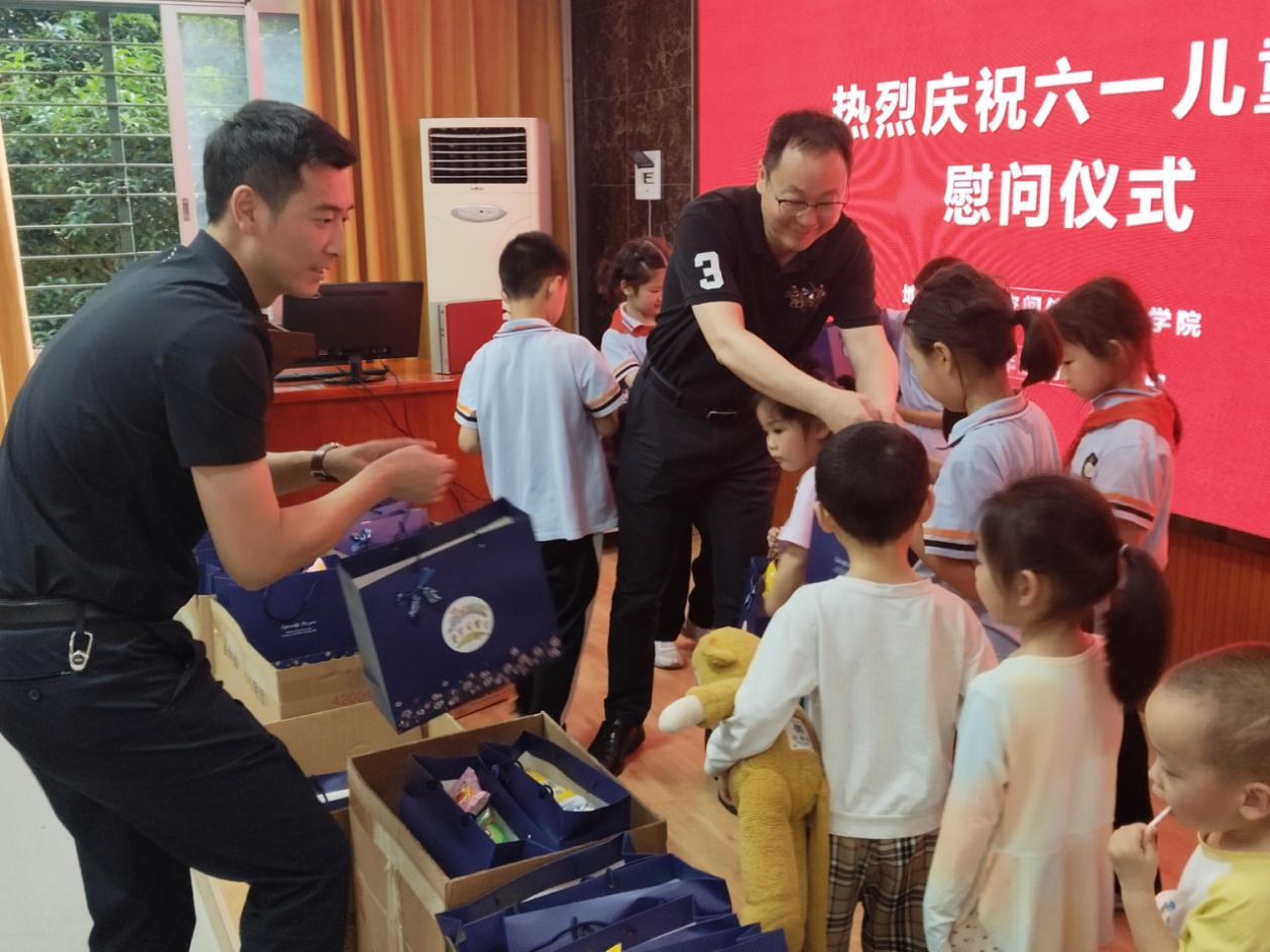 随后,党委书记龙四春和党委副书记崔皓分别给小朋友送上精美的节日礼物,并合影留念。小朋友们收到礼物后,脸上洋溢着幸福的笑容,纷纷表示要好好学习,不辜负家长和老师们的期望。整个慰问活动充满了温馨与欢乐,不仅让小朋友们感受到了节日的氛围,也增强了学院教职工之间的凝聚力和向心力