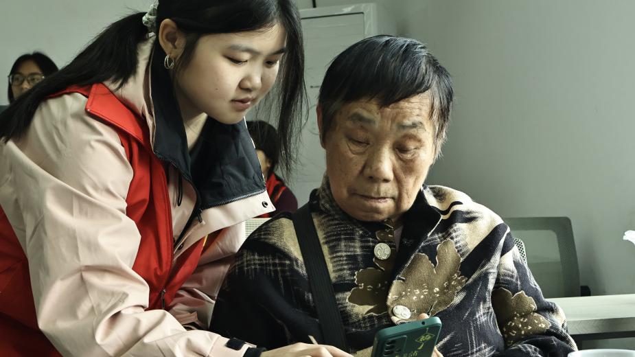 ▲图1 志愿者为老人讲解现场