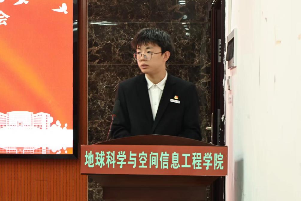 ▲院研究生会主席贺斌发言