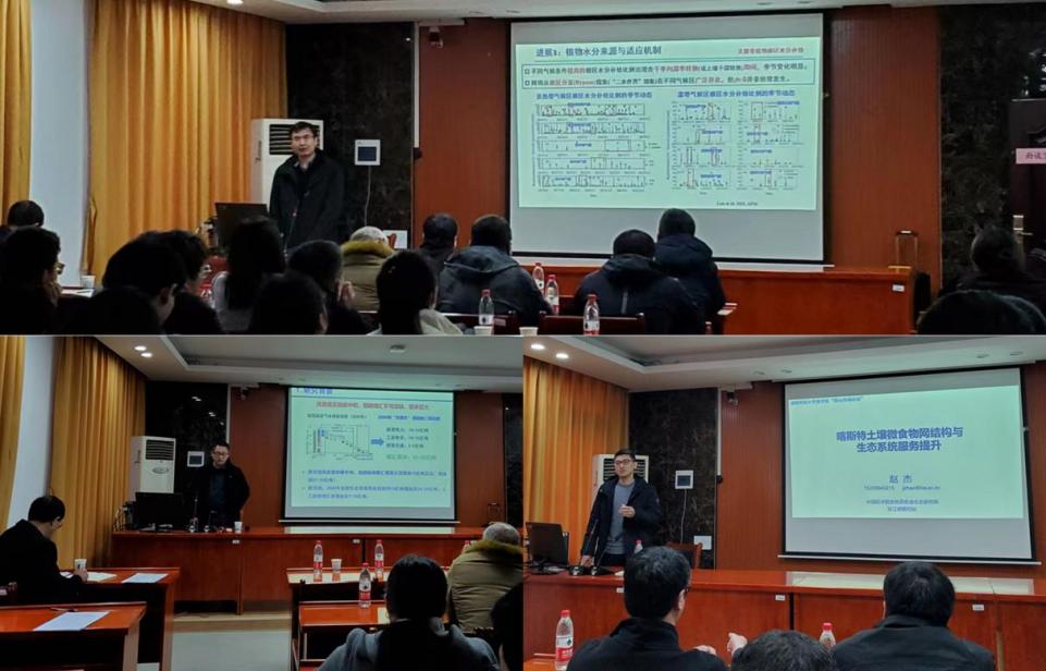 陈洪松围绕《喀斯特关键带水文过程与植物水分适应机制》主题,就“关键带多界面水文过程及其关键驱动因子”与“异质性生境典型植物水分来源与适应机制”两个关键科学问题,详尽展示了其团队的研究进展。张伟和赵杰分别就《喀斯特植被恢复的土壤碳汇效应与碳库稳定性》和《喀斯特土壤微食物网结构与生态系统服务提升》主题进行了学术报告。