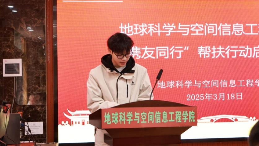 随后,帮扶学生代表上台发言。他表示:“学习是一场携手共进的旅程。帮扶不仅仅是知识的传递,更是责任与担当的践行。困难只是暂时的,只要我们坚持不懈,终将迎来蜕变的曙光。”被帮扶学生代表也积极表态:“我们将珍惜这次宝贵的学习机会,虚心请教,努力提升自己,不辜负学院和帮扶同学的期望。发言结束后,活动进入另一个重要环节——三方共同签订承诺书。帮扶学生、被帮扶学生以及学院代表共同签署了承诺书,明确了各自的责任与义务,表达了共同努力、携手进步的决心。