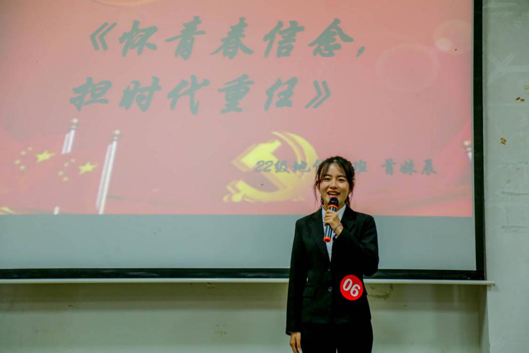 经过初赛激烈的角逐,十名选手于今晚进行最后的决赛。参赛选手们围绕“青春献给二十大”“将青春之小我融入祖国之大我”这类话题,或结合亲身经历,或选取新颖观点,撰写了观点鲜明、传承红色文化的演讲稿,并以铿锵有力的语言和真挚饱满的情绪,以青年视角,谈责任与担当。在比赛过程中,选手们表达了为祖国建设而奋斗的决心,让青春绽放在二十大的信心,表现了科大学子爱党、拥护党的红色基因的坚定立场。